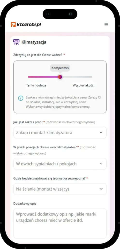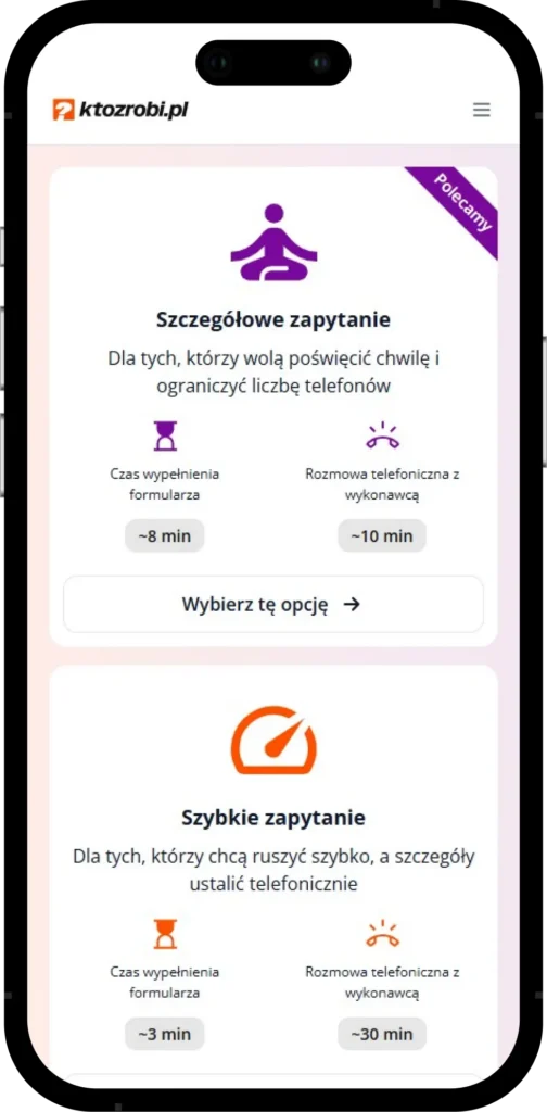Wybierasz czy ma być „dobrze i tanio”, „kompromis” czy „jakość”. Dostaniesz do wyboru tylko wykonawców, którzy robią tak jak chcesz.